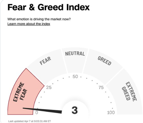 Adding to the pure washout levels of sentiment, the CNN Fear & Greed Index hit a level of three yesterday morning—about as low as it can go—suggesting many of the sellers have likely already sold.