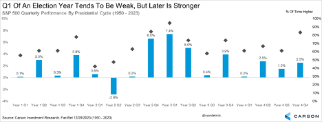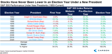 Speaking of which, let’s not forget what Chief Investment Strategist at CFRA and friend of Carson Investment Research Sam Stovall once told us. If the opposite of ‘pro’ is ‘con,’ then the opposite of progress must be Congress! That’s a joke you can use all year now.