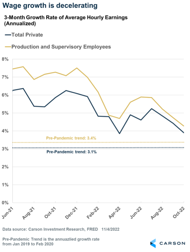 - Wage growth is slowing, and that should ease the Fed’s concerns about wages driving persistent inflation.
