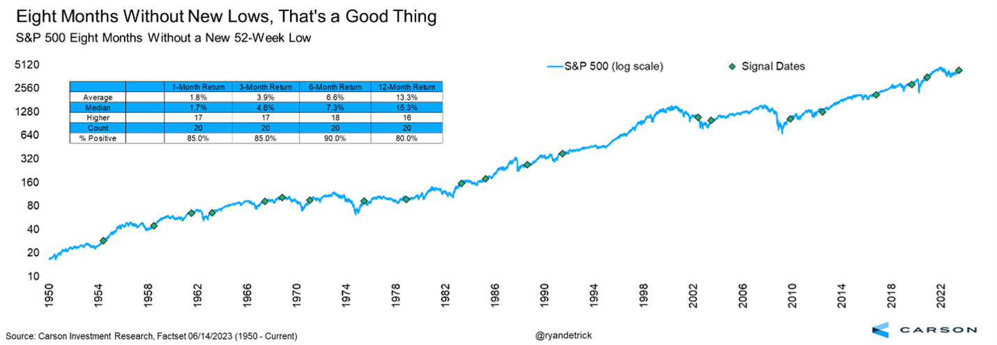 - Among several bullish signs: new 52-week highs and eight months without new lows.
