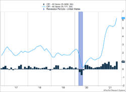 Inflationary pressures are becoming more ingrained in the economy. Last month’s 0.9% increase in the CPI raised the annual inflation rate to 6.2% (Figure 1). The large monthly increase and relatively low inflation in the same month last year pushed the annual number higher and ended a period wherein the annual inflation rate moderated. Supply chain woes continued as ships were unable to unload and many unfilled jobs are providing challenges for companies.