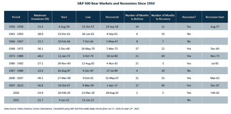 While the current bear market is the 11th since 1950, it is only the fourth to occur outside of a recession. Non-recessionary bear markets are usually shallower, averaging a 28% decline, compared to an average 39% decline for recessionary bear markets (Figure 2). This week, the government will release the Job Opening and Labor Turnover Survey (JOLTS) for May and the Employment Situation report for June. The ideal result is decent job creation while companies choose to pull back open positions to reduce the excess demand for labor.