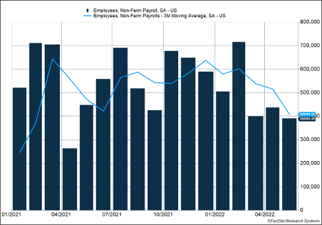 Average hourly earnings increased 0.3%, which roughly matched the previous month. In the last 12 months, hourly earnings have increased 5.2%, a monthly rise of more than 0.4%. Higher wages can lead to inflation becoming more entrenched than it already is, so a 0.3% rise suggests wage inflation is close to the long-term target.