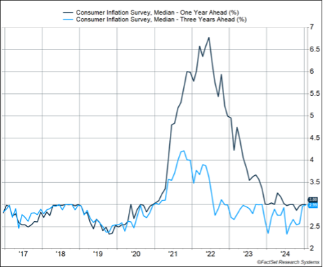 At the same time, a more robust survey from the New York Federal Reserve shows a more benign picture of inflation expectations. The sample size for this survey is larger, amongst other robust methodology choices. This survey showed that median 1-year and 3-year ahead inflation expectations were unchanged at 3%. That’s not too far above what we saw in 2019 (when it averaged about 2.5%). Still, things are on the upper edge of what would likely be comfortable for the Federal Reserve, which pays close attention to inflation expectations and sees it as a key potential driver of future inflation.