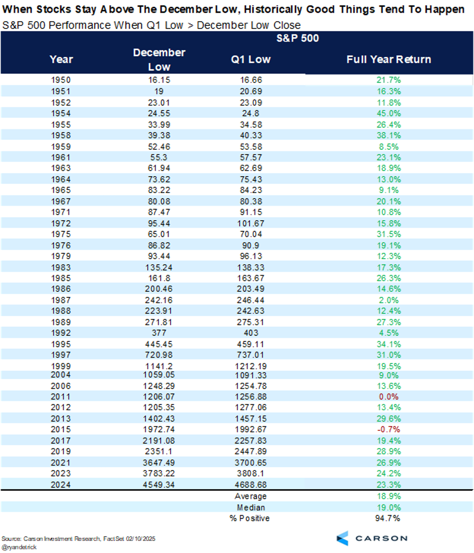 If you want to investigate things more closely, here are all 38 times the S&P 500 held above the December lows. Hard to look at this any other way than in the years this has happened, it was a major clue the bull was alive and well.