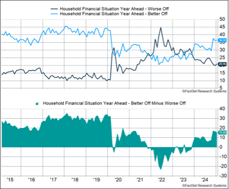 • 21% expect finances to be “somewhat worse off” or “much worse off” a year from now — down from 23.5% a year ago, but well above the 10.5% in February 2020.