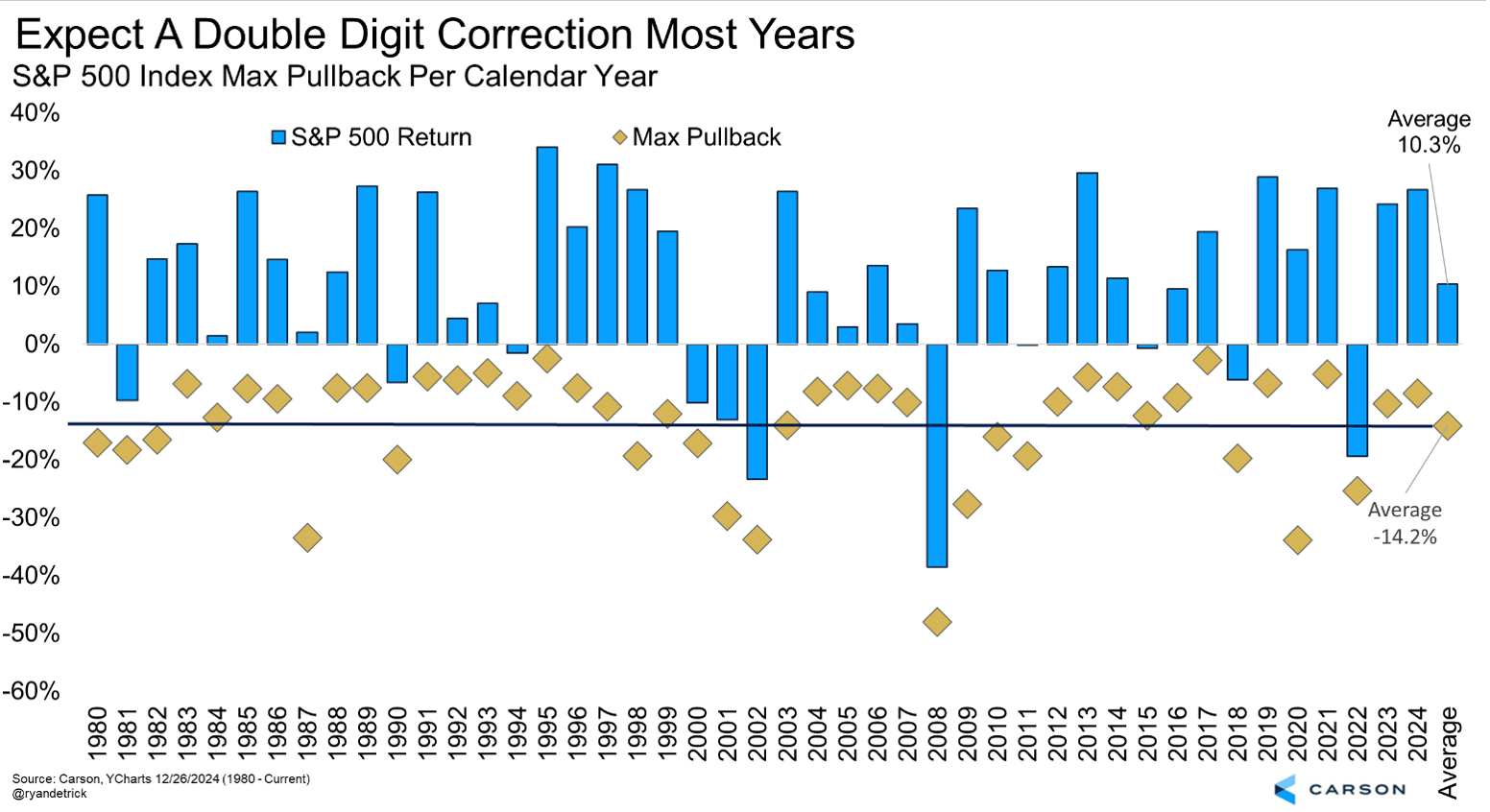 • To end the year, we share some favorite insights and charts on long-term investing that we think may be helpful in 2025, especially when the market experiences its normal ups and downs.