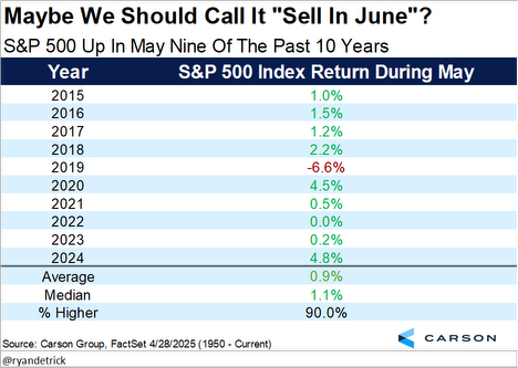 Not to mention the month of May has been higher nine of the past 10 years, so maybe we should call it, “Sell in June and go away”?