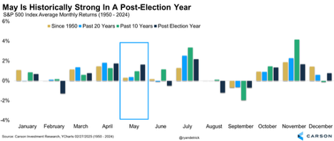 • The ‘Sell in May’ seasonal period is here, as these upcoming six months are historically the worst six months of the year, but we think this year could see solid gains and you don’t want to sell.