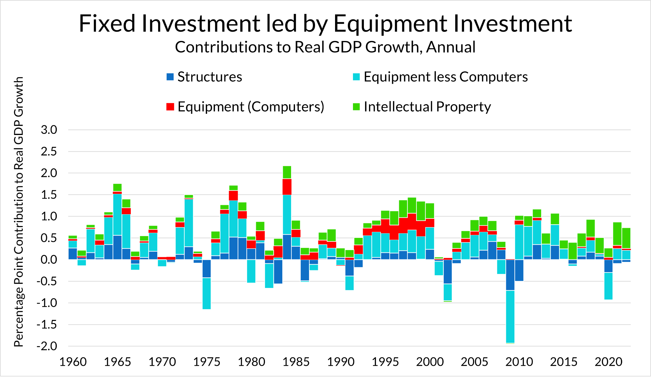 It’s important for investment to rise above the recent trend line, and that will get a boost if the Federal Reserve pulls back on its aggressive interest rate stance. We believe the Fed will start that process in a few months, especially as inflation continues to ease. Lower inflation combined with income growth propelled by a relatively strong labor market will keep consumption (and the economy) humming. That’s another key factor that will push businesses to invest. By contrast, if companies believe economic growth will ease to the relatively low levels of the last decade, there will be less incentive to invest.