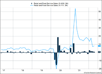 These strong retail sales numbers certainly point to a very strong U.S. consumer. The increases are not just because Americans are buying the same amount of goods that are now more expensive. The real retail sales figure increased 0.6% last month and has gone up 1.6% in the past three months.