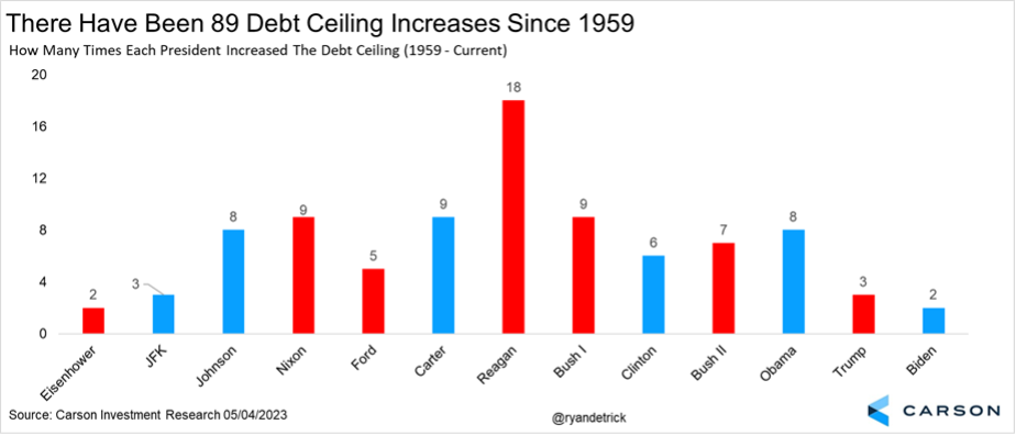 As we pointed out in a previous article, we expect the debt ceiling to be increased (suspended) yet again, for the 90th time since 1959.