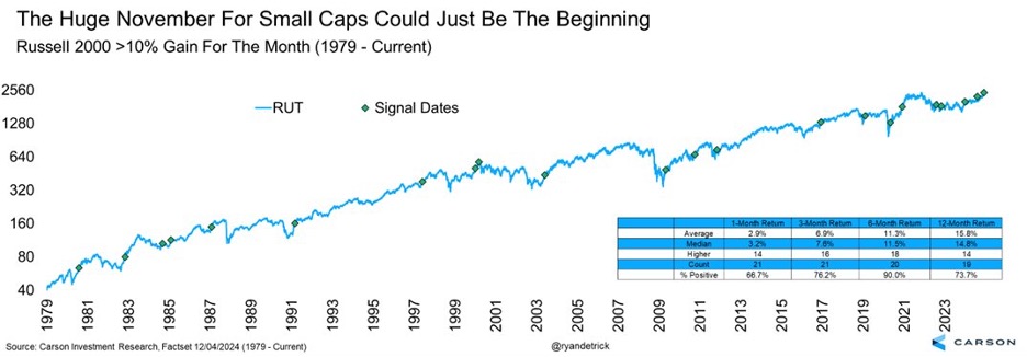 • Small caps had a huge month of November, which could be a clue that more strength is in the cards.