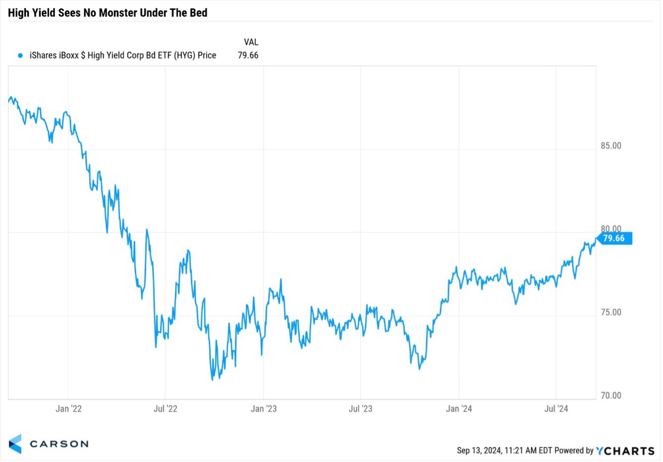 As we’ve noted the past two weeks, the calendar is doing no one any favors during the historically poor September and October period, but last week was a nice change with stocks moving higher to within just a chip shot of a new high. Was there any one specific event driving the bounce? There really wasn’t. But take note that it’s the second part of September that usually tends to see trouble, so some more volatility and choppiness over the coming weeks is still entirely possible. Let’s not forget the S&P 500 has been higher nine of the past 10 months and some occasional consolidation, while scary, can actually be healthy.