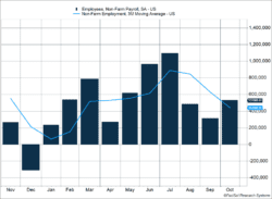 After a couple weak monthly reports, U.S. employment roared back in October. The U.S. created 531,000 new jobs, beating expectations for 412,500. August and September were both revised higher by more than 100,000 jobs. Private payroll increased 604,000 while government payrolls shrank 73,000. Unemployment dipped from 4.8% to 4.6%.