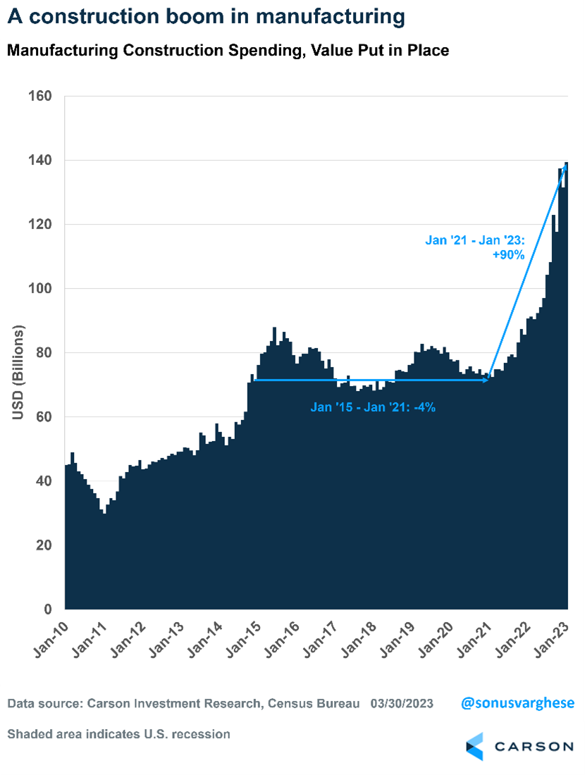 As of January, manufacturing construction spending in dollar terms is up 54% year-over-year, and it is up 90% from two years ago.