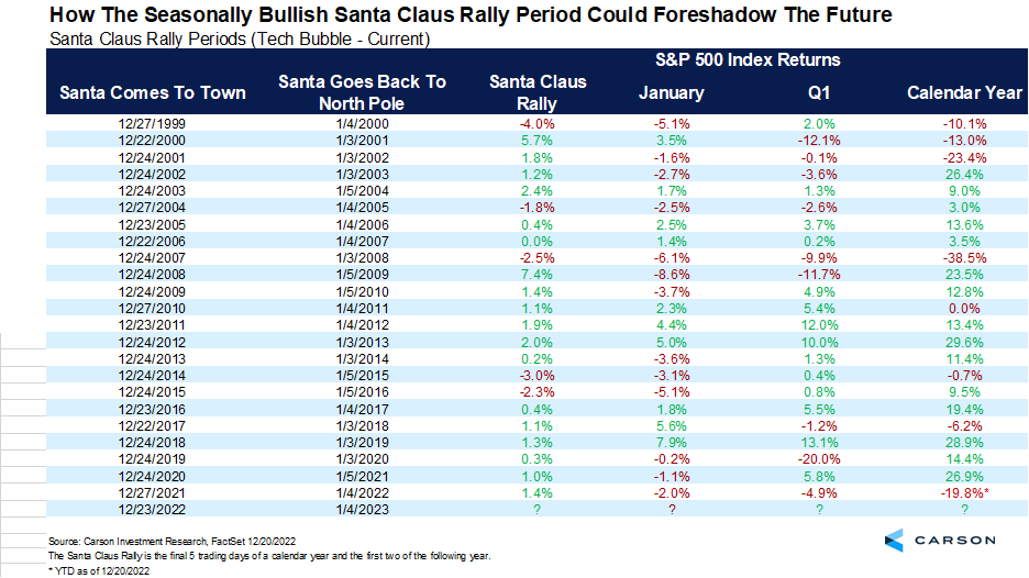 - The well-known Santa Claus rally period is upon us, and how stocks perform could be a clue for January.