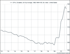 The good news is that as this inflection point works its way through, the inflationary pressures will begin to subside. And there are signs that this is beginning to happen. In areas like durable goods – things like washing machines and lawnmowers – inflation appears to be rolling over. Americans who spent so much time in a pandemic-lockdown upgraded home items. This resulted in inflationary pressures. But that cycle is likely to have peaked.
