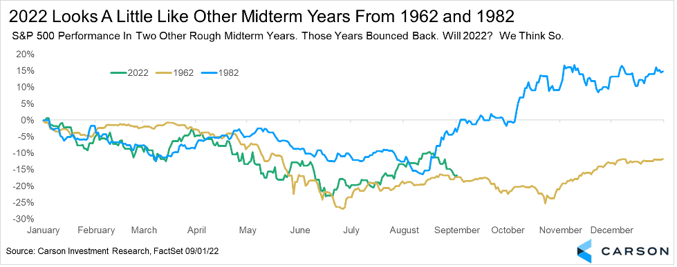 - Historically, similar bad starts to midterm election years have been followed by stock market rallies late in the year.