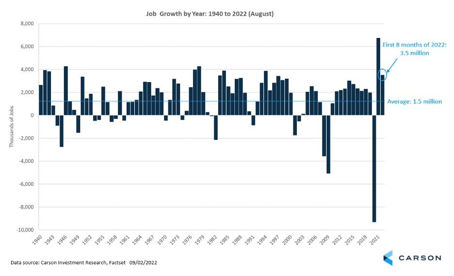- More than 3.5 million jobs have been created over the first eight months of 2022, which is not typical of a recession.